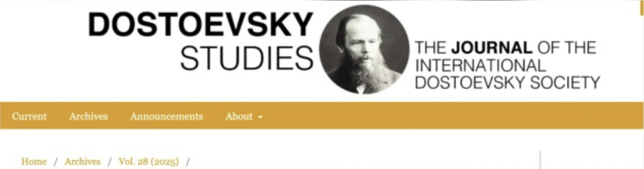 Опубликована (по-английски) в «Dostoevsky Studies» статья на основе моего доклада в Афинах (Афинском университете) в октябре 2025 г.